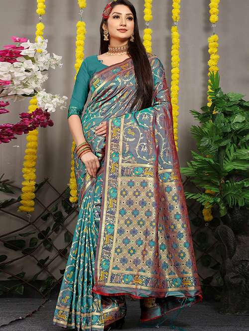 women's banarasi saree with blouse - 20231941 - Very Small Image - 1