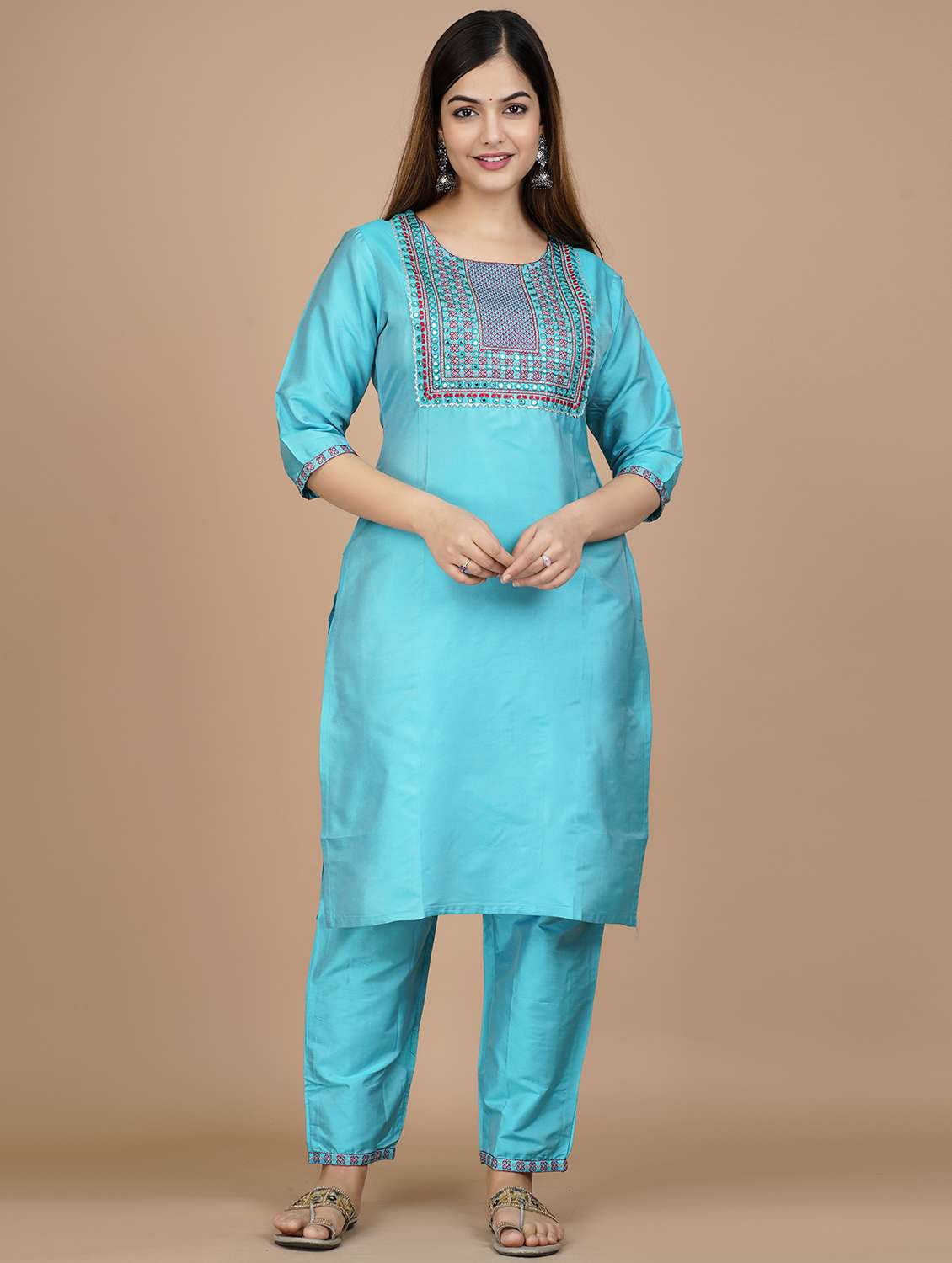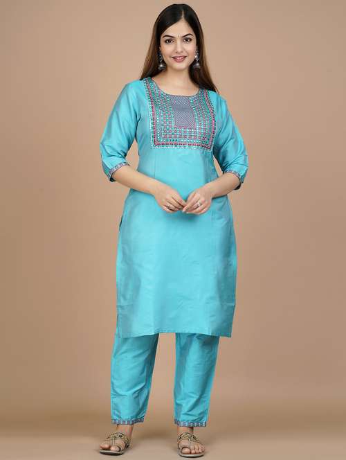 - » sky blue round neck kurta pant set