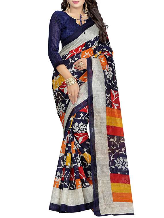 blue silk blend printed saree with blouse