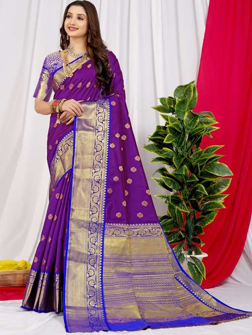 - » women's self design blue colored saree with blouse