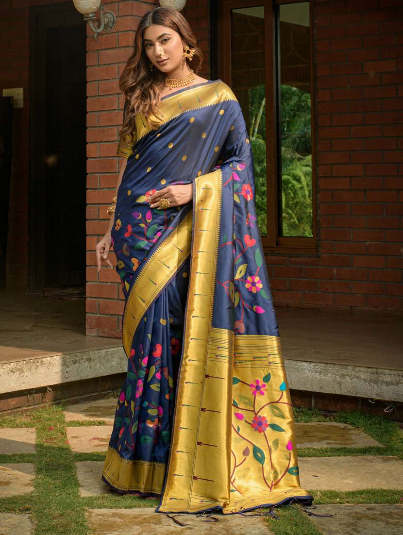 women's self design navy blue colored saree with blouse - 20277674 - Very Small Image - 1