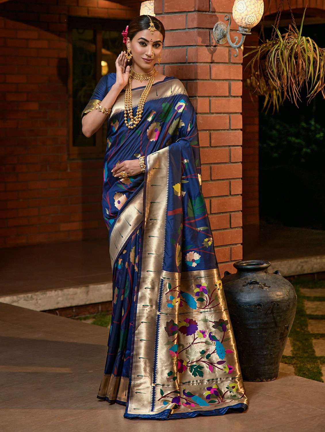 women's self design navy blue colored saree with blouse - 20290739 - Very Small Image - 1