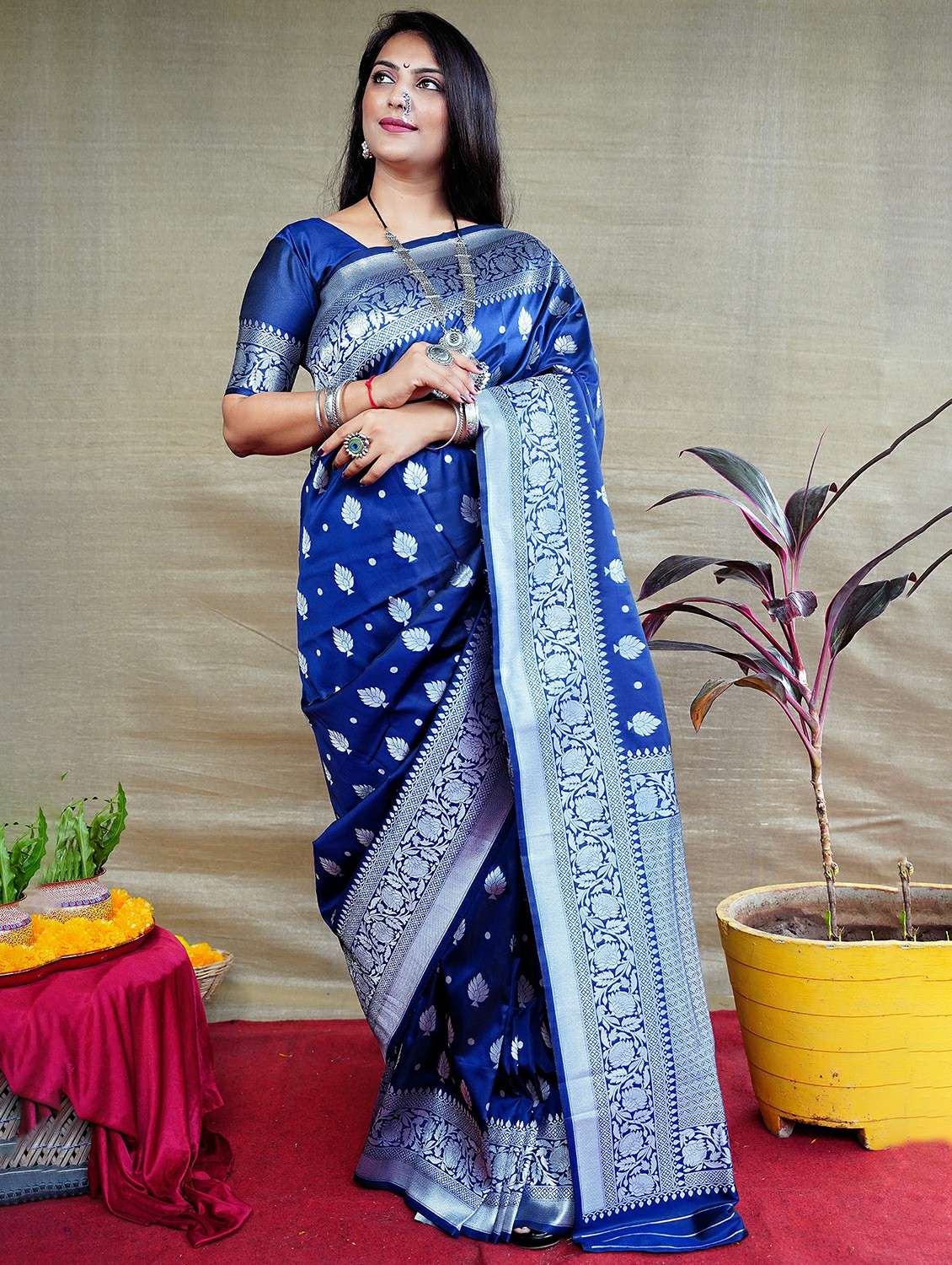 - » women's self design blue colored saree with blouse