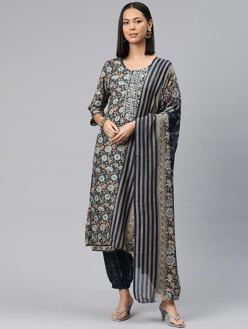 - Find gorgeous sets of ethnic wears in trending designs in navy blue colors suitable for festive wear of occasions.
