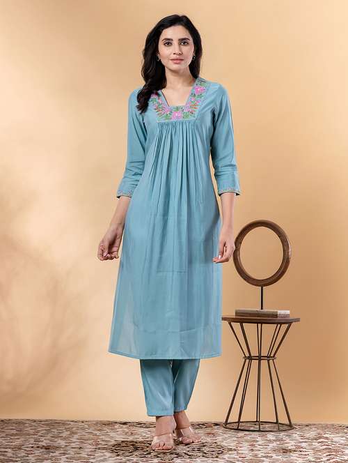 - Find gorgeous sets of ethnic wears in trending designs in blue colors suitable for festive wear of occasions.