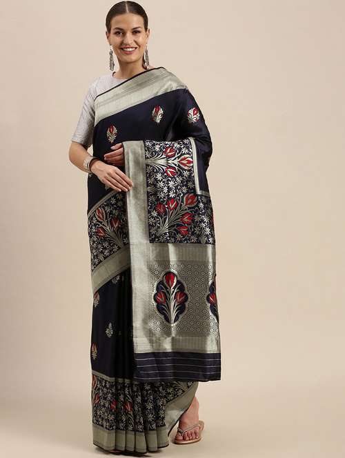women's self design blue colored saree with blouse - 18461085 - Very Small Image - 1