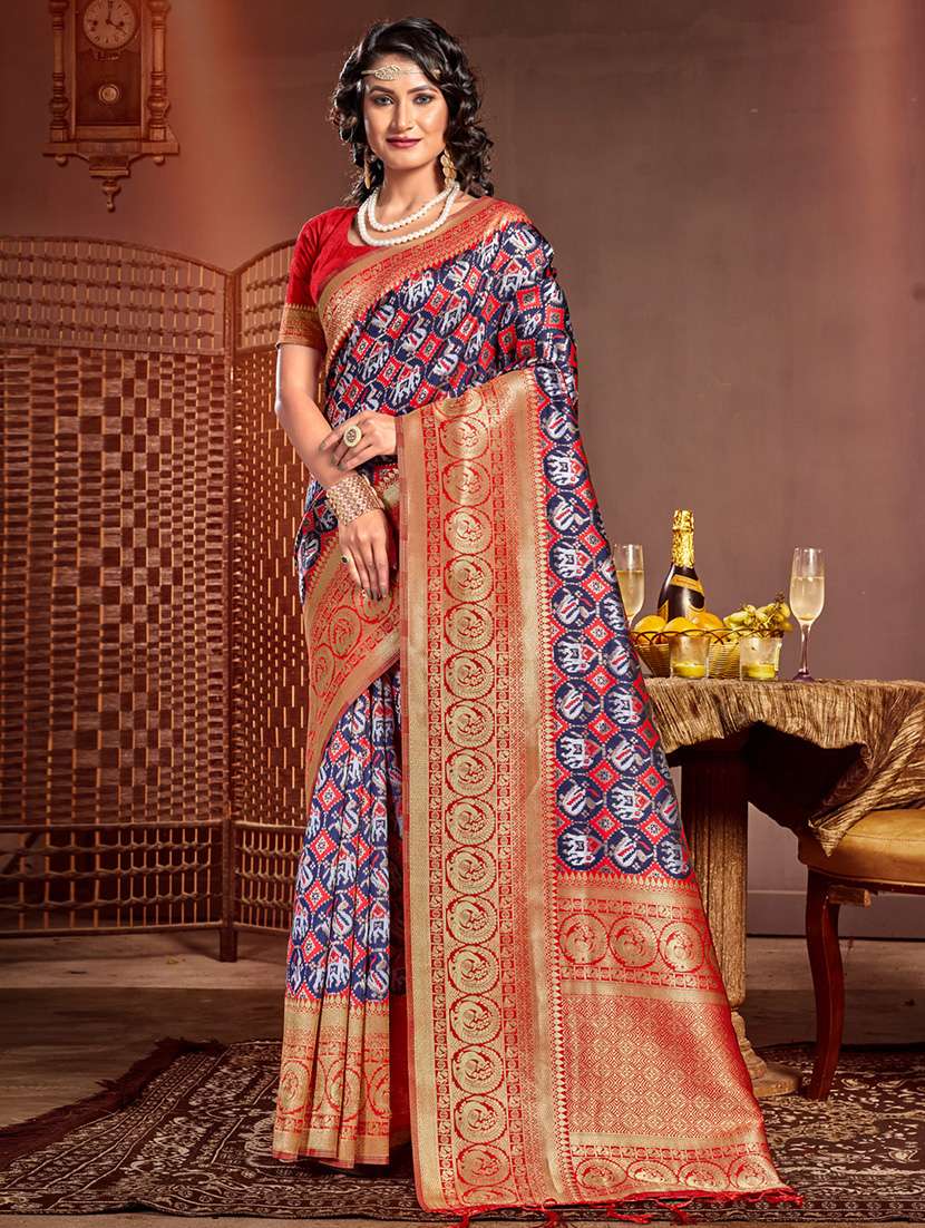 - » women's self design blue colored saree with blouse
