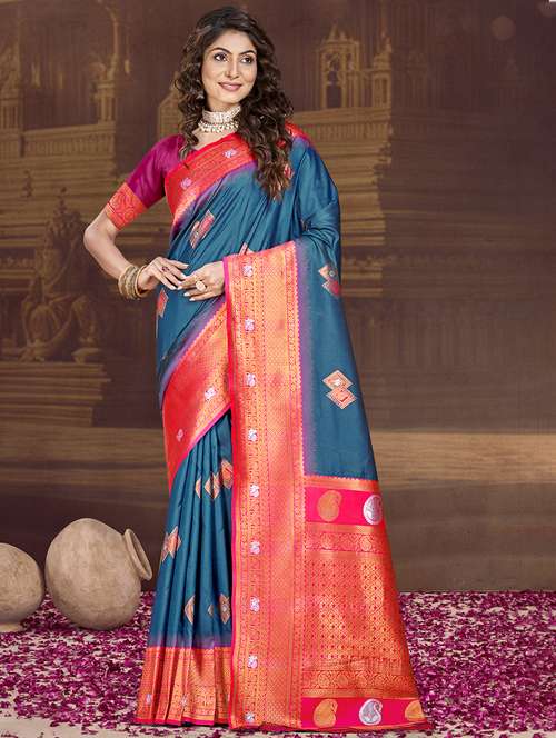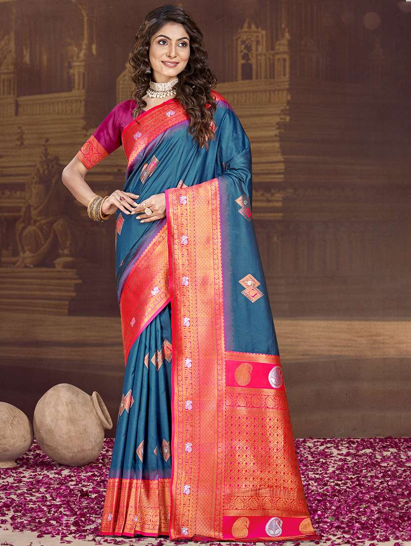 Sangam Prints Teal SILK Woven Work Traditional Saree