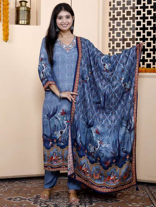 - » women three quarter sleeve kurta pant with dupatta set