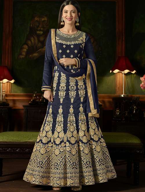 - » embroidered semi-stitched anarkali suit