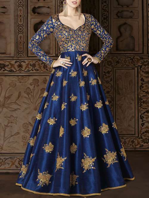 - » blue embroidered semi-stitched anarkali suit