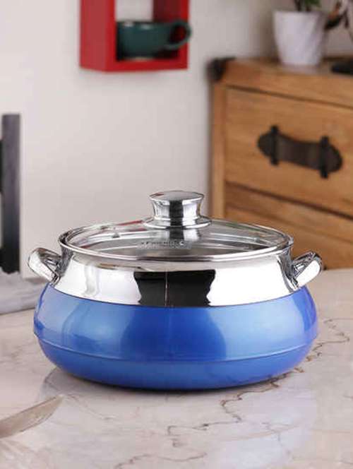 - » blue blue stainless steel and plastic 2500 ml caserrole with lid