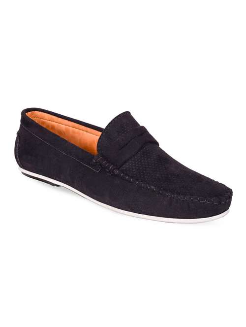 blue suede slip on loafers