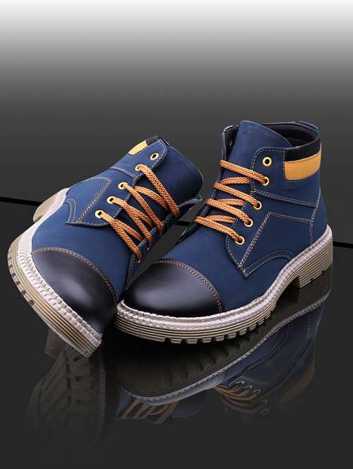 men blue lace up boots