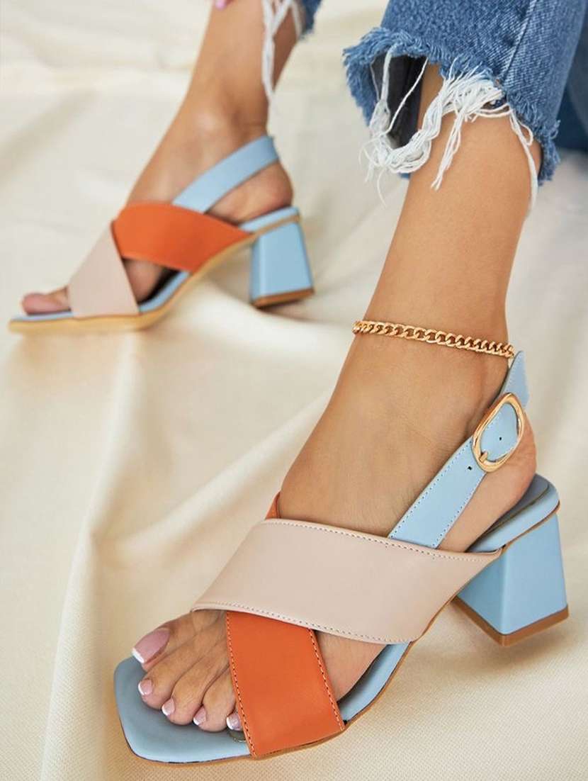 blue synthetic back strap sandals