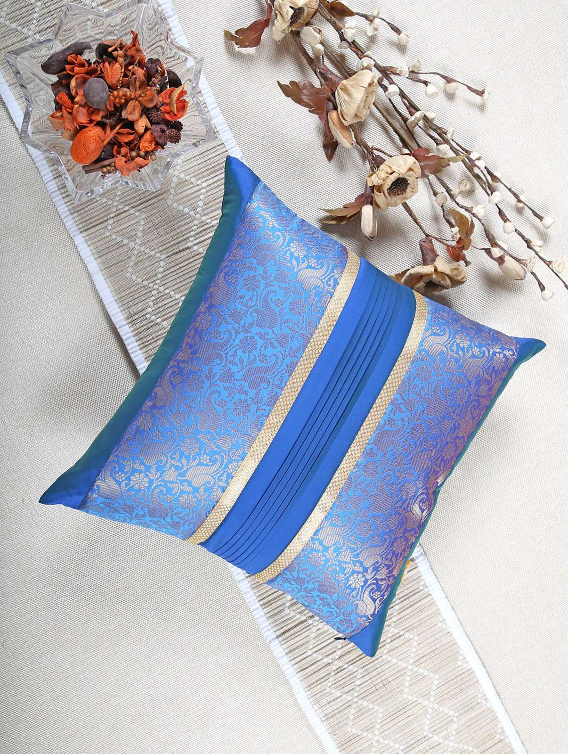 red  foliage brocade cushion cover with pleats - 18249102 - Very Small Image - 1
