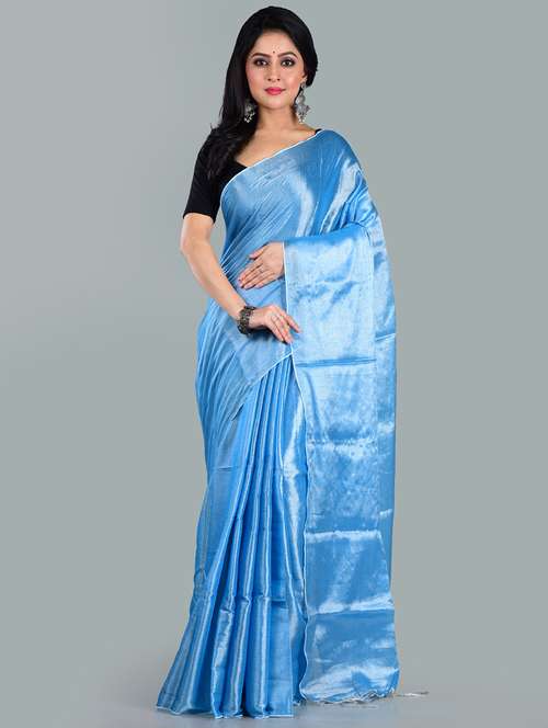Aakar Light Blue Tissue Saree With Unstitched Blouse Piece
