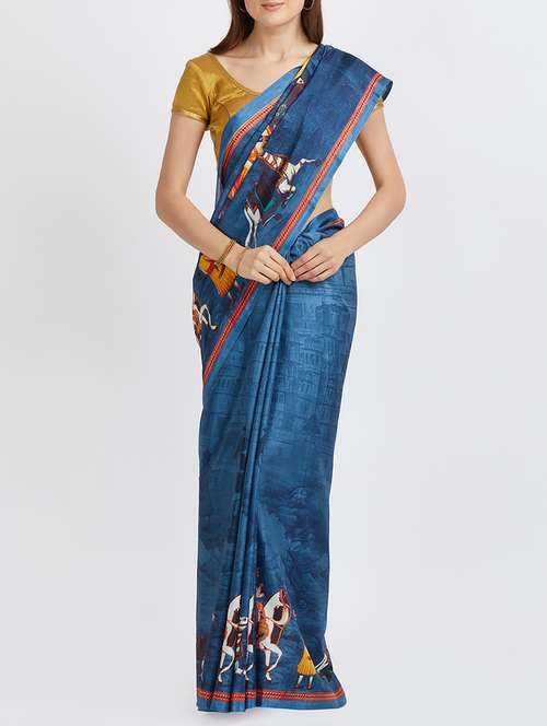 - » blue tussar silk saree with blouse