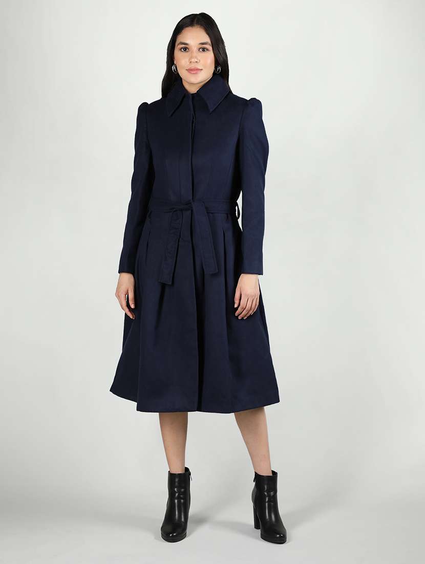 - » women blue shirt collar full sleeves coat