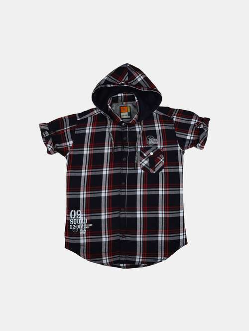 check print shirt with hood neck
