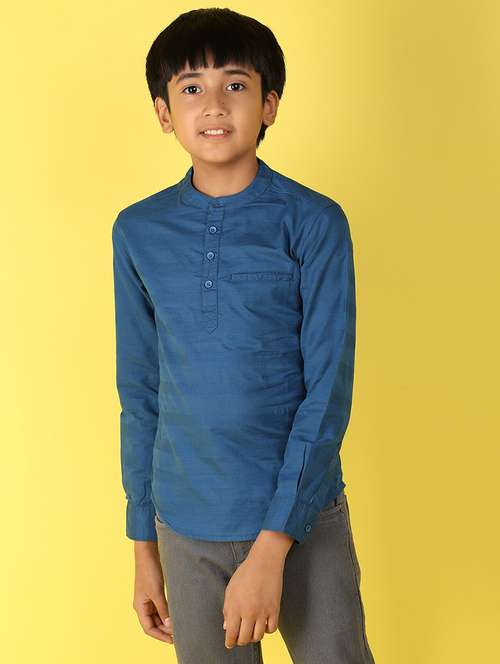 boy solid mandrain neck shirt