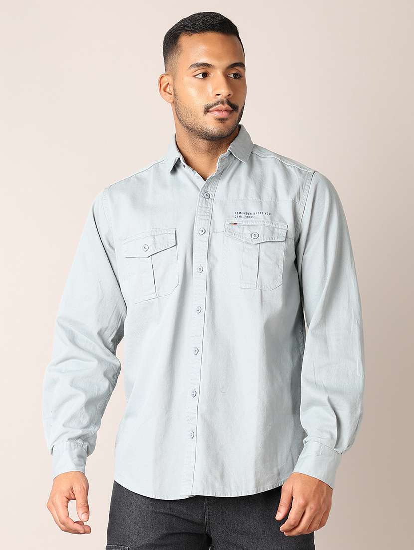 men solid collared shirt