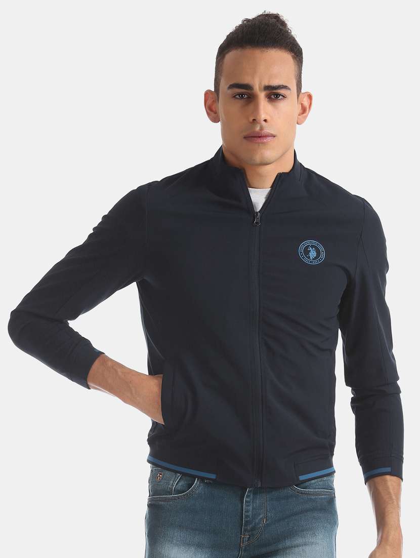 navy blue solid casual jacket