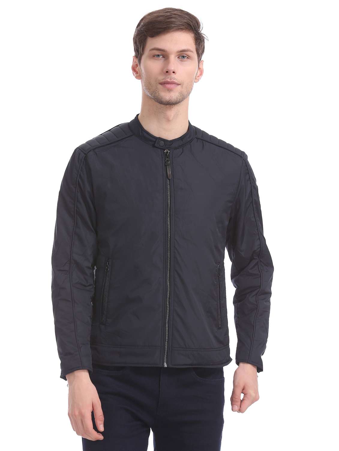 navy blue solid casual jacket