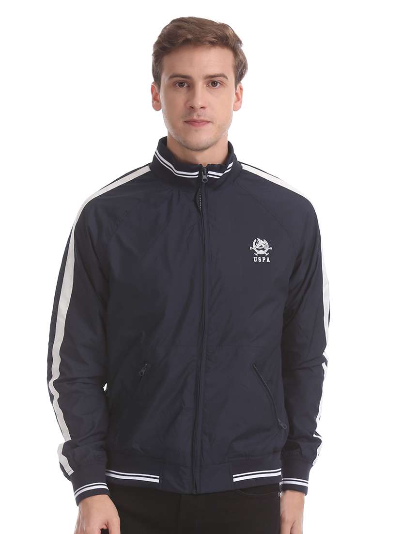 - » navy blue solid bomber jacket