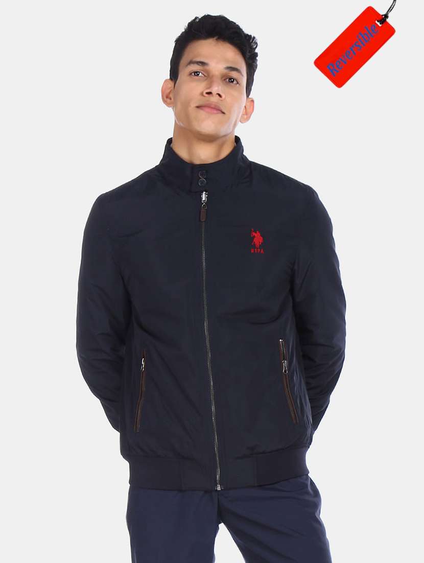 blue  color block reversible casual jacket - 18352643 - Very Small Image - 1