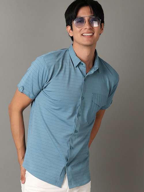 - » men textured collared short sleeves shirt