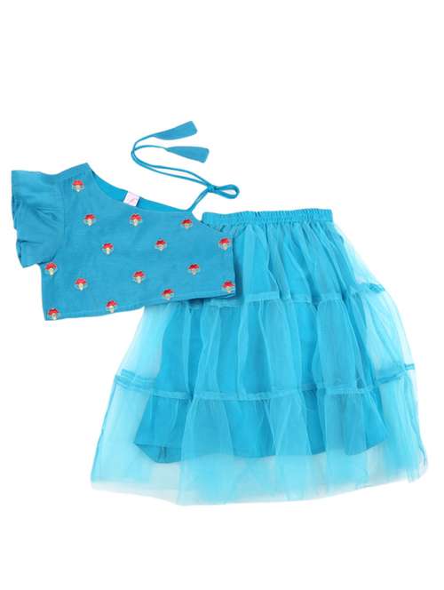 girls blue embroidered skirt top set