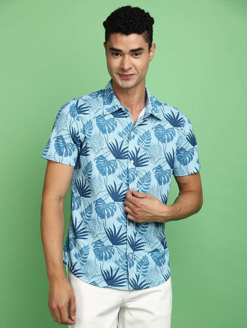 - » men light blue regular fit tropical print casual shirt