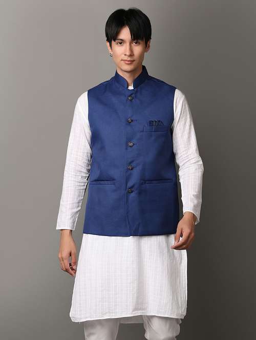 - Look stylish and confident in V-Mart brands with blue Nehru jackets in which you will feel your best.