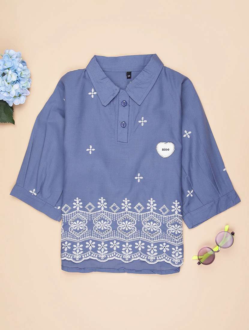 - » girls embroidered puff sleeve collared top