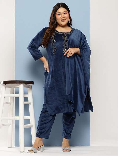 - » women plus size embellished three quarter sleeve kurta pant with dupatta set