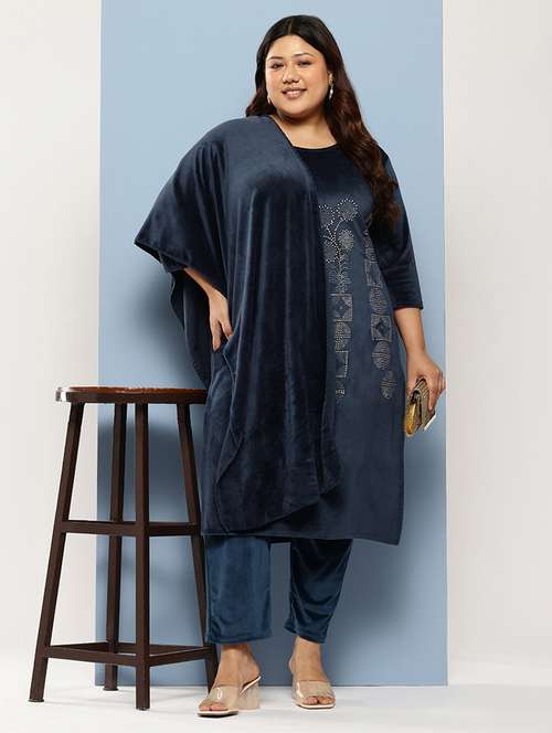 - » women plus size embellished three quarter sleeve kurta pant with dupatta set