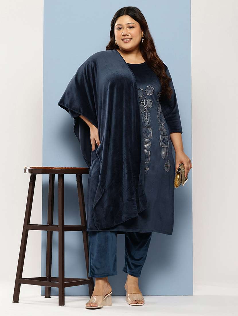 women plus size embellished three quarter sleeve kurta pant with dupatta set