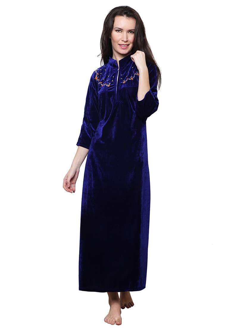 navy blue embroidered nighty