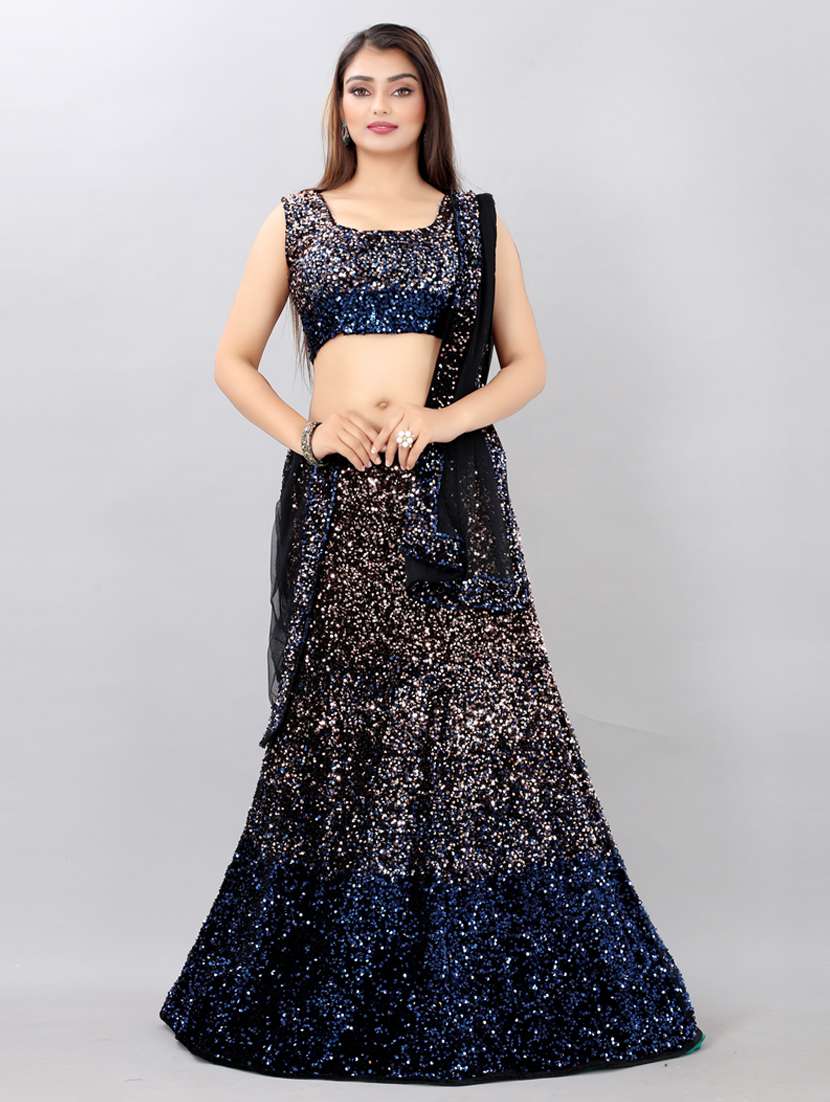 - » blue velvet flared lehenga