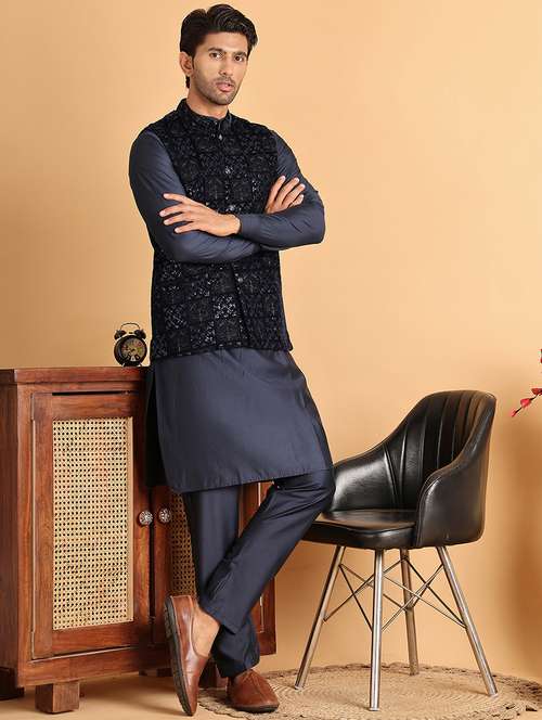 men blue embroidered nehru jacket - 21664908 -  Standard Image - 0 men blue embroidered nehru jacket - 21664908 -  Zoom Image - 0