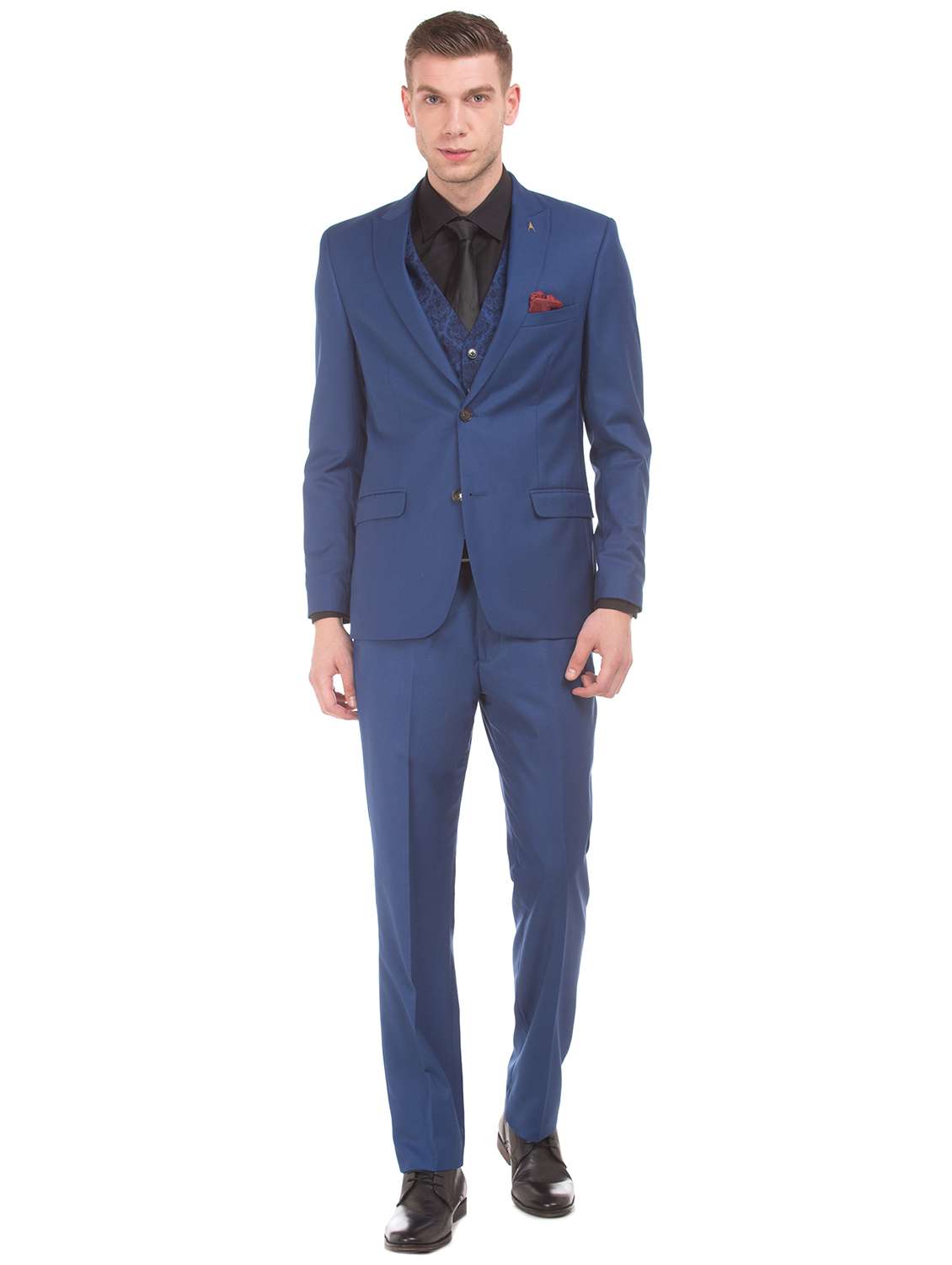 blue solid 3-piece suit