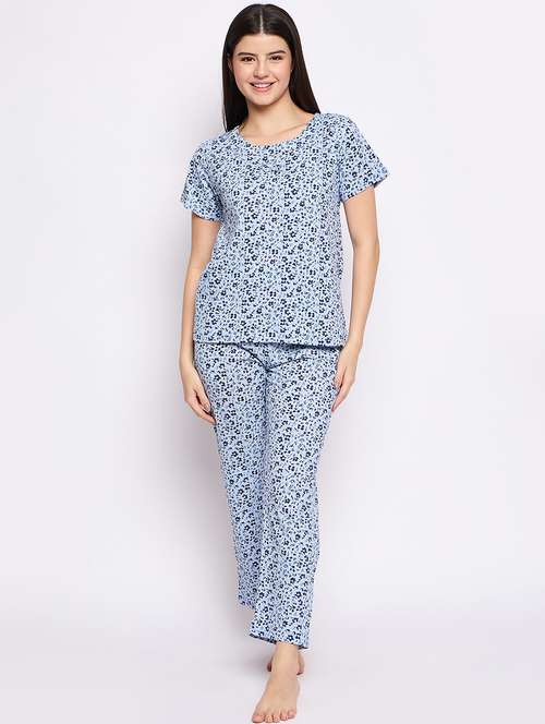 - After a long tiring day, slip into something homely, shop for the all-new collection of nightwear sets for ladies in M sizes and gorgeous blue designs and colors.