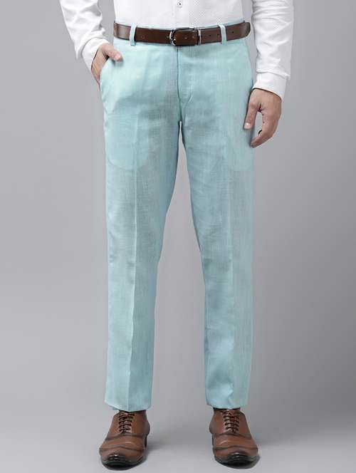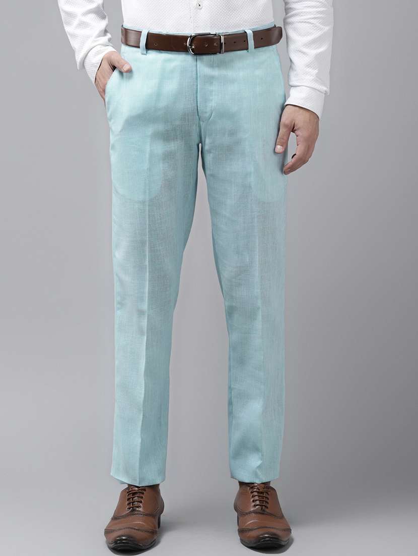 blue solid casual trouser