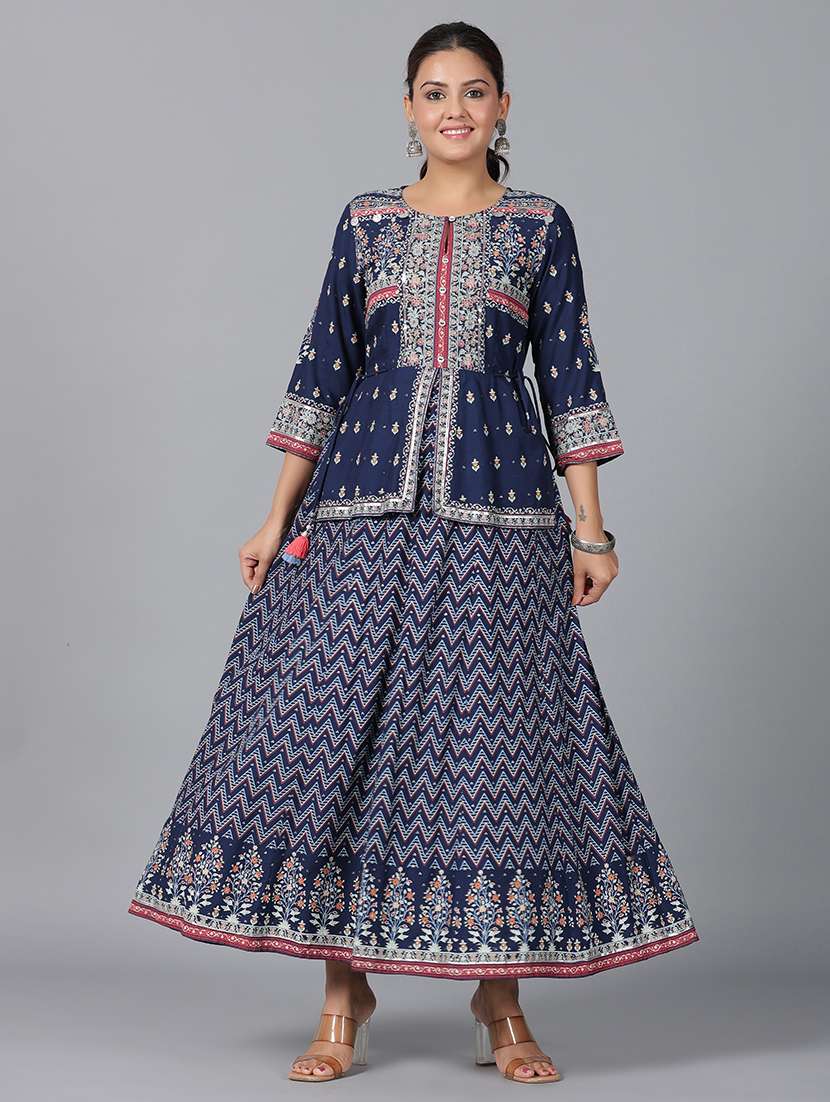 navy blue layered printed ethnic dress - 20369249 - Very Small Image - 1