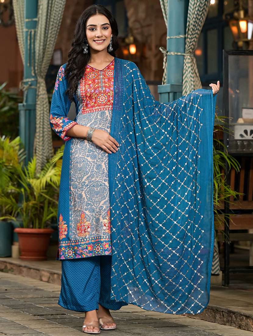 - Find gorgeous sets of ethnic wears in trending designs in blue colors suitable for festive wear of occasions.