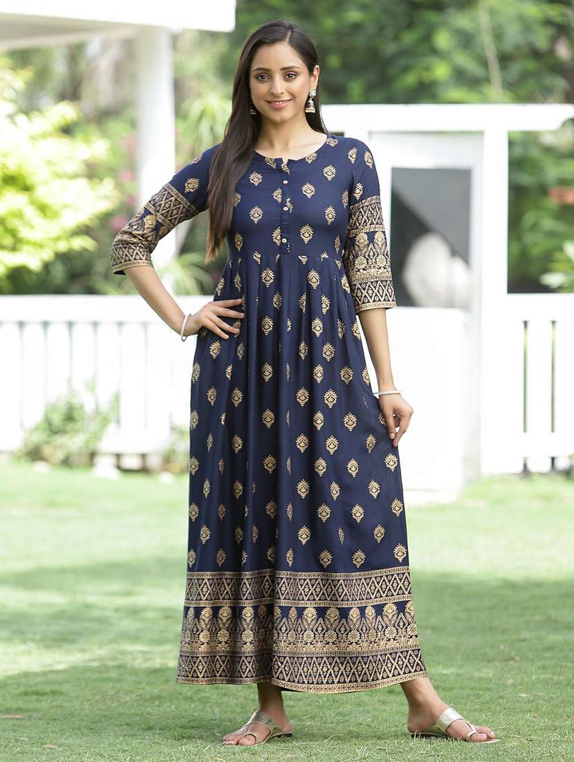 women printed fit & flare ethnic dress - 21747736 - Very Small Image - 1