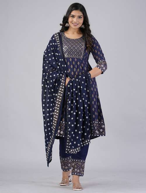 - » women three quarter sleeve kurta pant with dupatta set