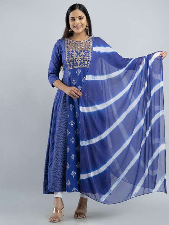 - » women blue round neck kurta dupatta set