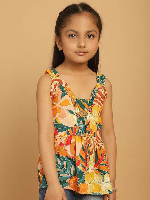 - » girls floral printed square neck top
